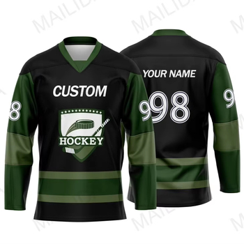 Free Tax Custom Sublimated Mesh Ice Hockey Jersey Respirável Poliéster Equipe Uniformes V Neck Ice Hockey Jersey